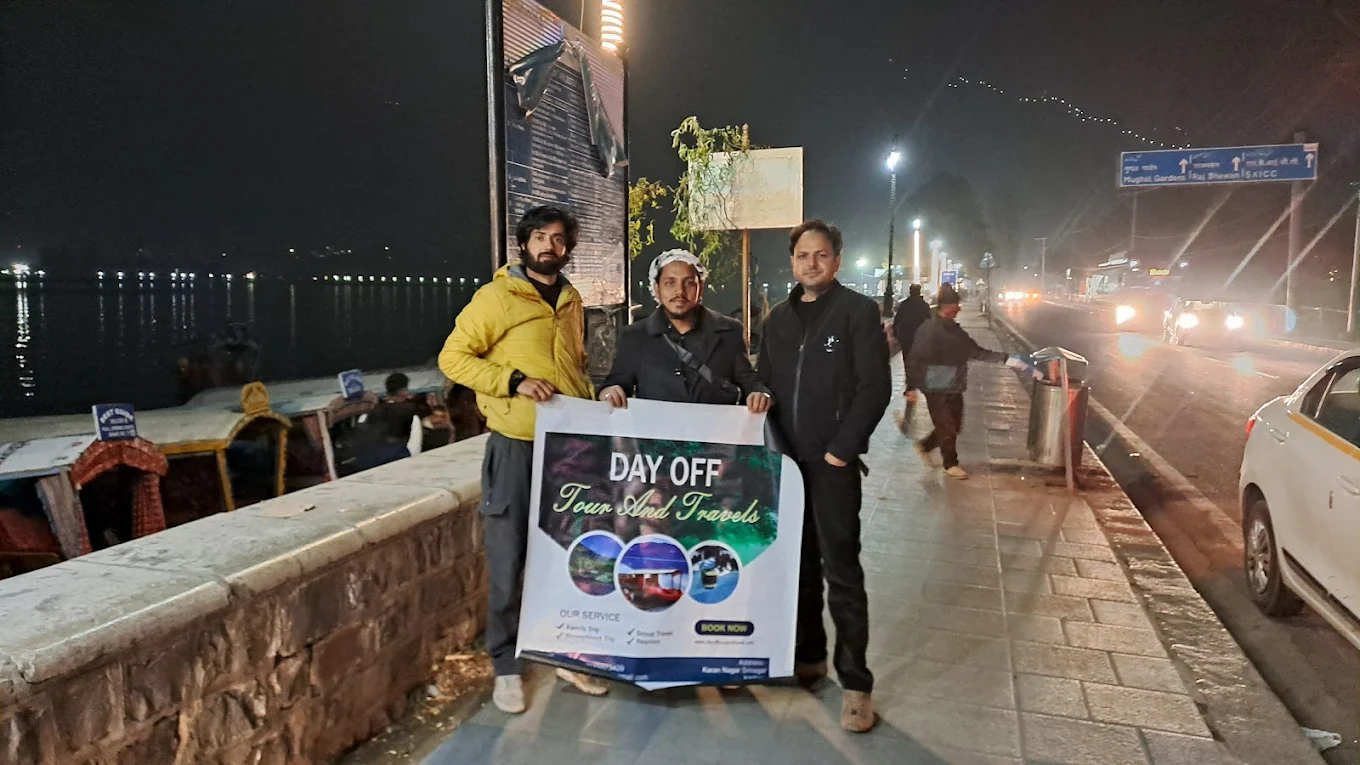 ELAHI ALI ANSARITrustindex verifies that the original source of the review is Google. Their packages claim to cover the typical Kashmir tourist circuit — Gulmarg, Pahalgam, Sonamarg, Srinagar — which matches what you'd expect if you want “all-place guiding + driver + transport + stay + sightseeing.” Sajid AnwarTrustindex verifies that the original source of the review is Google. “We had an amazing 5 nights 6 days family tour with day off tour and travels, from Hotel Accomodation to driver everything was perfectly plaaned … overall it was a wonderful experience travelling with Day Off Tour and travels Driver Idrees … very kind helpful throughout full tour Their packages claim to cover the typical Kashmir tourist circuit — Gulmarg, Pahalgam, Sonamarg, Srinagar — which matches what you'd expect if you want “all-place guiding + driver + transport + stay + sightseeing.” Shahid SheikhTrustindex verifies that the original source of the review is Google. We have an amazing 6 nights 7 days group tour with Day Off Tour and Travels, tour started from 12 Nov 2025 to 19 Nov 2025. Special mention to driver Driver (Mehraj) who was very helpful throughout full tour. Owner Irshad did every possible support to make our tour memorable. He changed hotels as per our needs and requirements. Staff of Day Off Tour and Travels are also dedicated for good service. They deserve 5 star rating for making our first Kashmir Tour Un-forgetable.❤️❤️🩹 Mubashir AshrafTrustindex verifies that the original source of the review is Google. Very cooperative owner and staff. Overall its was amazing experience with Day Off Tour and Travels Ishfaq NajarTrustindex verifies that the original source of the review is Google. Wonderful services from Day one to day end..very smooth and cooperative team.Hotels they offered were really good Herritage Chinar / INDUS Resort/ Green Rooms ..Food was also tasty..thankyou so much day off tour and travels Simranjit SinghTrustindex verifies that the original source of the review is Google. Amazing Service, from hotel selection to driver everything was managed perfect .We are fully satisfied with Day Off Tour & Travels.Special thanks to Mr Irshad khan and Javid bhai owners of this company for the co-operation .. Arka GhoshTrustindex verifies that the original source of the review is Google. Day off tour and travels is a very efficient travel agency to book your Kashmir trip..!! We booked our tour with them in the month of april, 2025. In that difficult time they managed to provide us all the support..!! Everything went very smoothly staring from the hotel, car, pick up and drop everything..!! The owners (Irshad and Javed) are very helpful..!! I would definitely recommend DAY OFF TOUR AND TRAVELS for your next Kashmir trip..!! yudhajit sahaTrustindex verifies that the original source of the review is Google. Travelled with them to kashmir, the trip was organised very smoothly, there was no problems and the accommodations provided was also very standard, they went extra step in adjusting our tour and provide full support and safty due to the turmoil situation of Kashmir. Those who are or will be travelling to Kashmir if they are looking for travel agent I would highly recommend day off tour. Thank you Ranalika MitraTrustindex verifies that the original source of the review is Google. It has been an amazing experience with Day Off Tour & Travel. They have provided full support and assistance during the critical time in Kashmir also, they have always been a phone call away to accommodate any request we had as tourists. The entire trip was hassle free and seamless due to their constant support. I will highly recommend everyone to book their Kashmir trip through Day Off Tour & Travel.